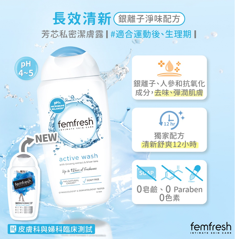 含人參及金盞花舒緩成分,pH值平衡配方,有助維持女性私密部位酸性環境及有利於益菌乳酸桿菌(Lactobacilli) 生長,抑制有害細菌及預防受細菌感染
